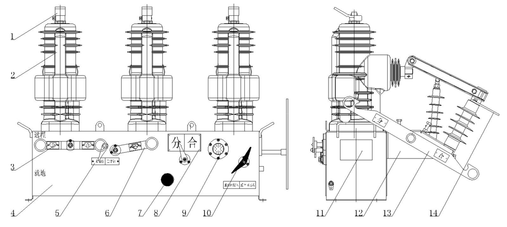 6.采用全密封結(jié)構(gòu),操動機構(gòu)安裝在箱體內(nèi),密封性能好,提高了防潮、防銹性能。箱體內(nèi)無變壓器油、無六氟化硫氣體,滿足無油化改造和環(huán)保的要求。